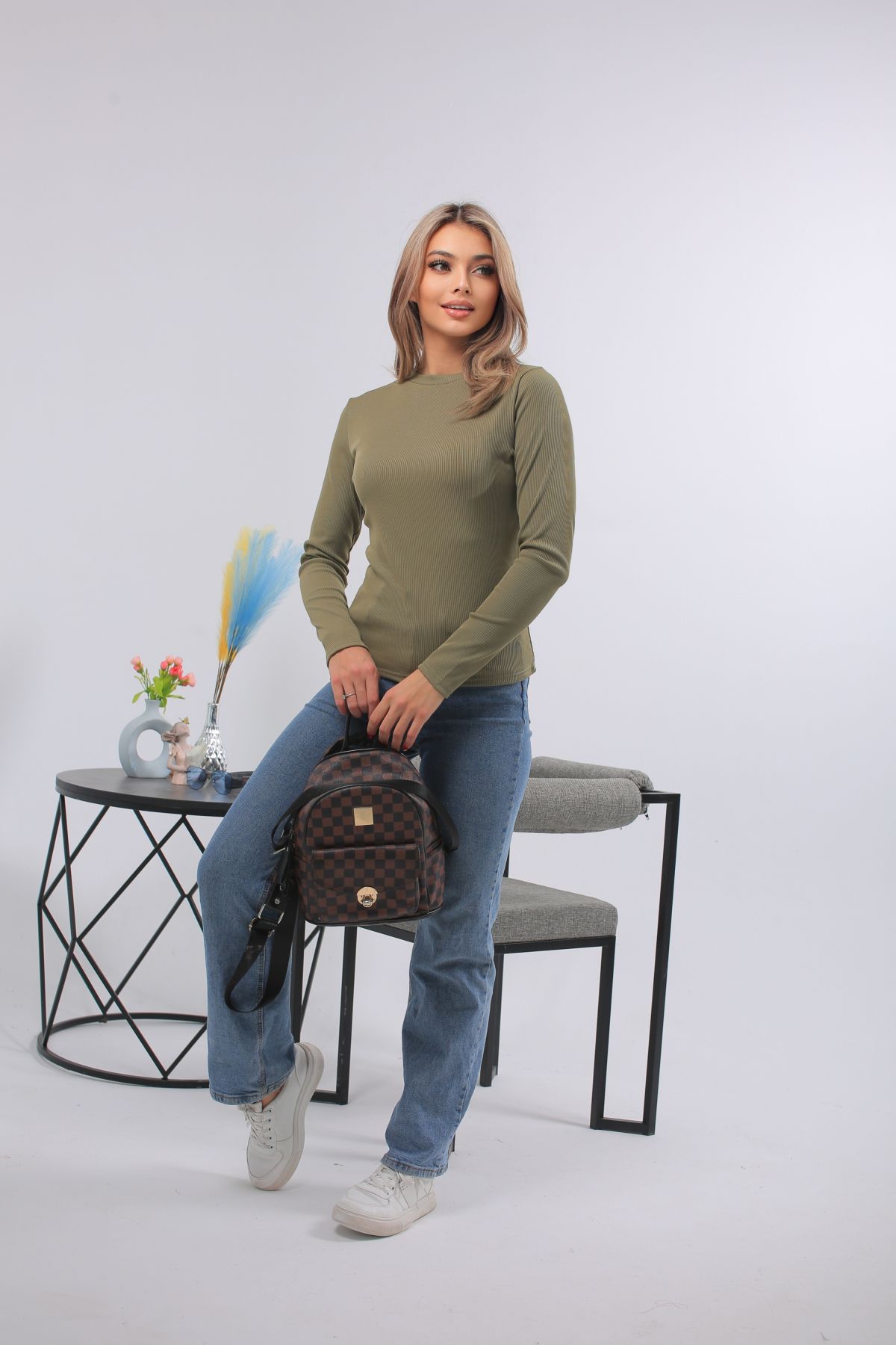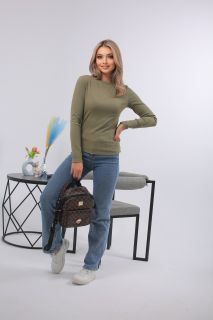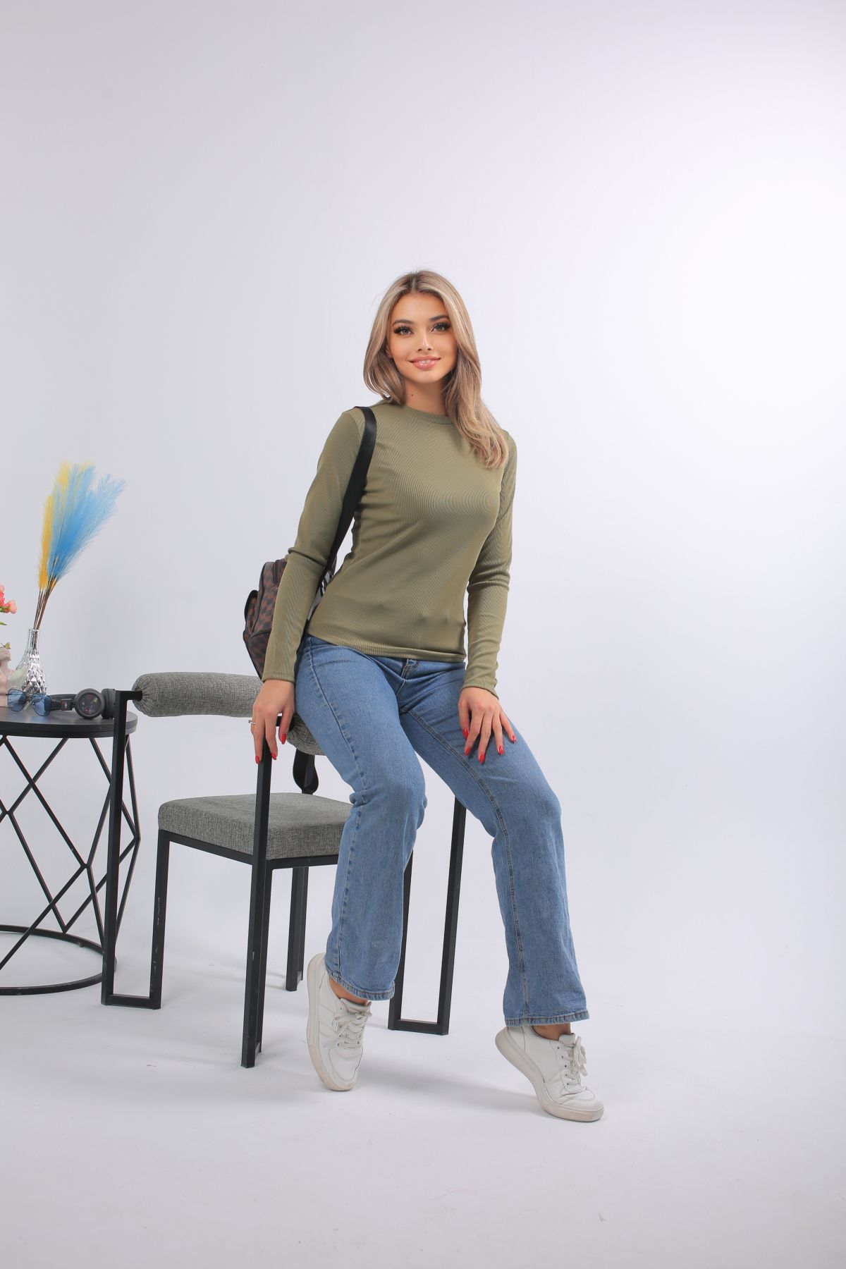 Женственный и универсальный лонгслив цвета хаки — идеальный выбор для базового гардероба. Модель выполнена из приятного к телу трикотажа в мелкий рубчик, хорошо тянется и красиво облегает фигуру. Длинный рукав, округлый вырез и лаконичный крой делают эту вещь отличной основой как для повседневных, так и для более собранных образов. Лонгслив легко сочетается с джинсами, брюками, юбками, пиджаками и кардиганами. Носи сам или как первый слой — и будь уверена в комфорте на весь день.