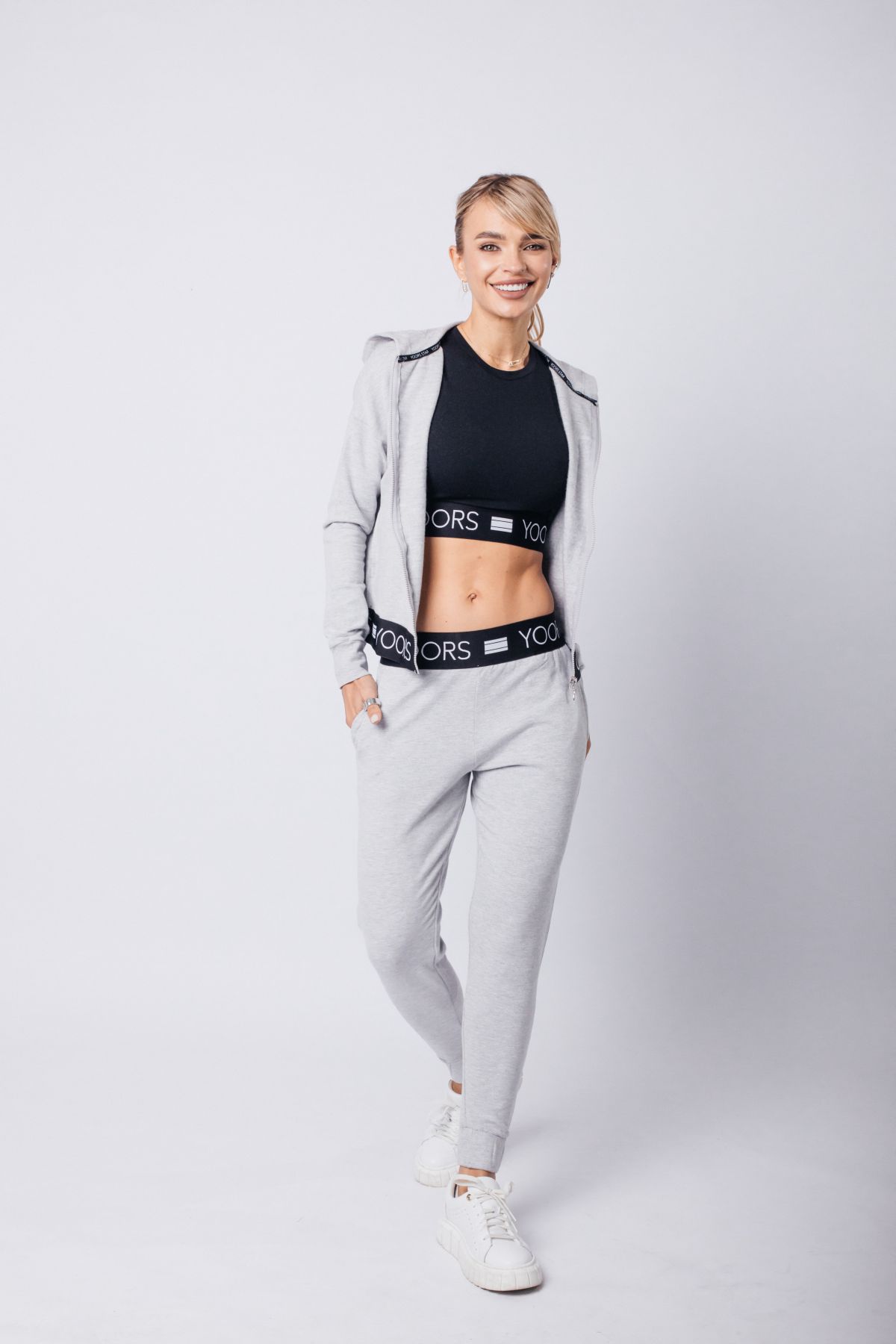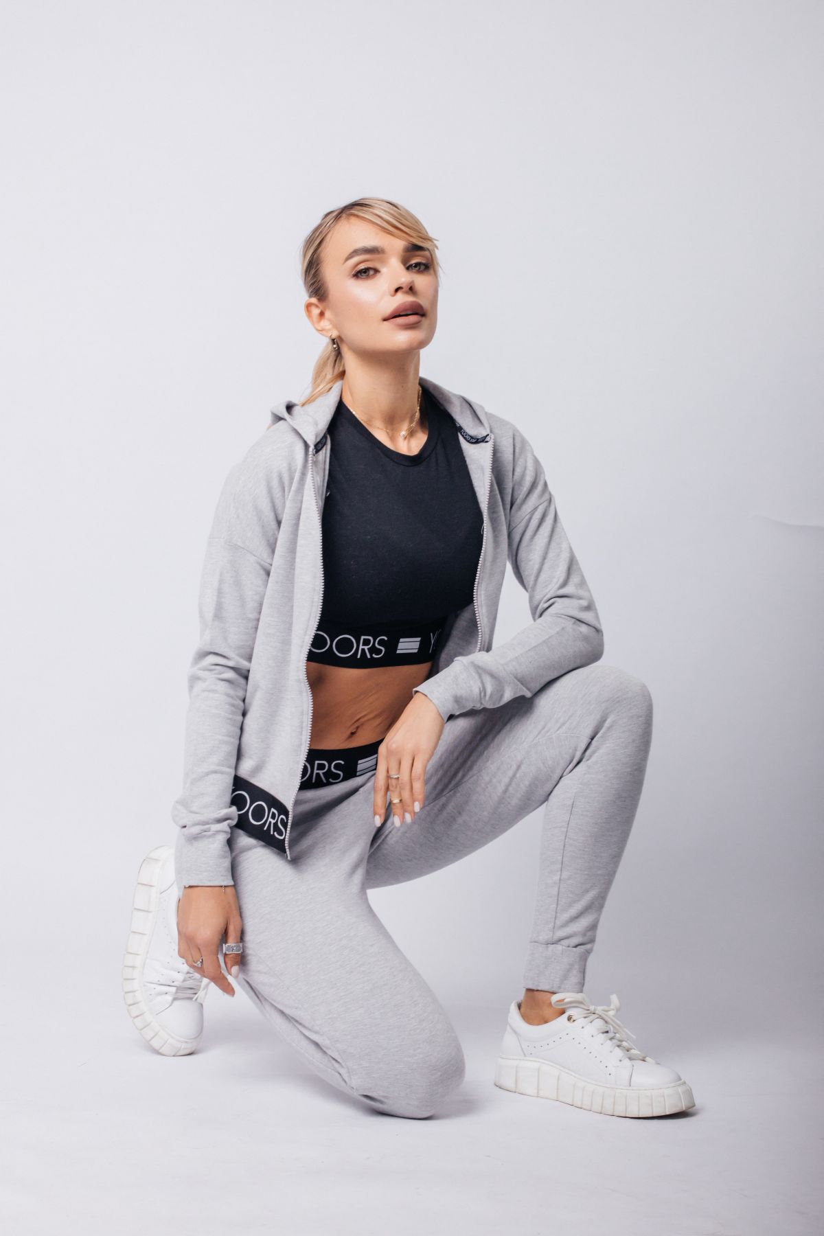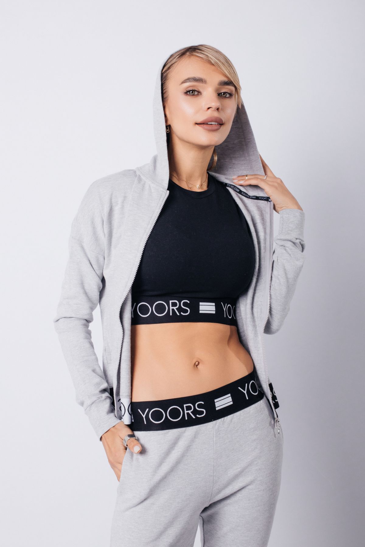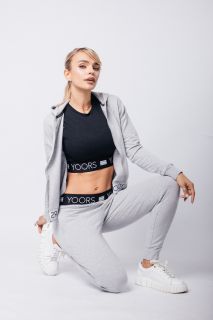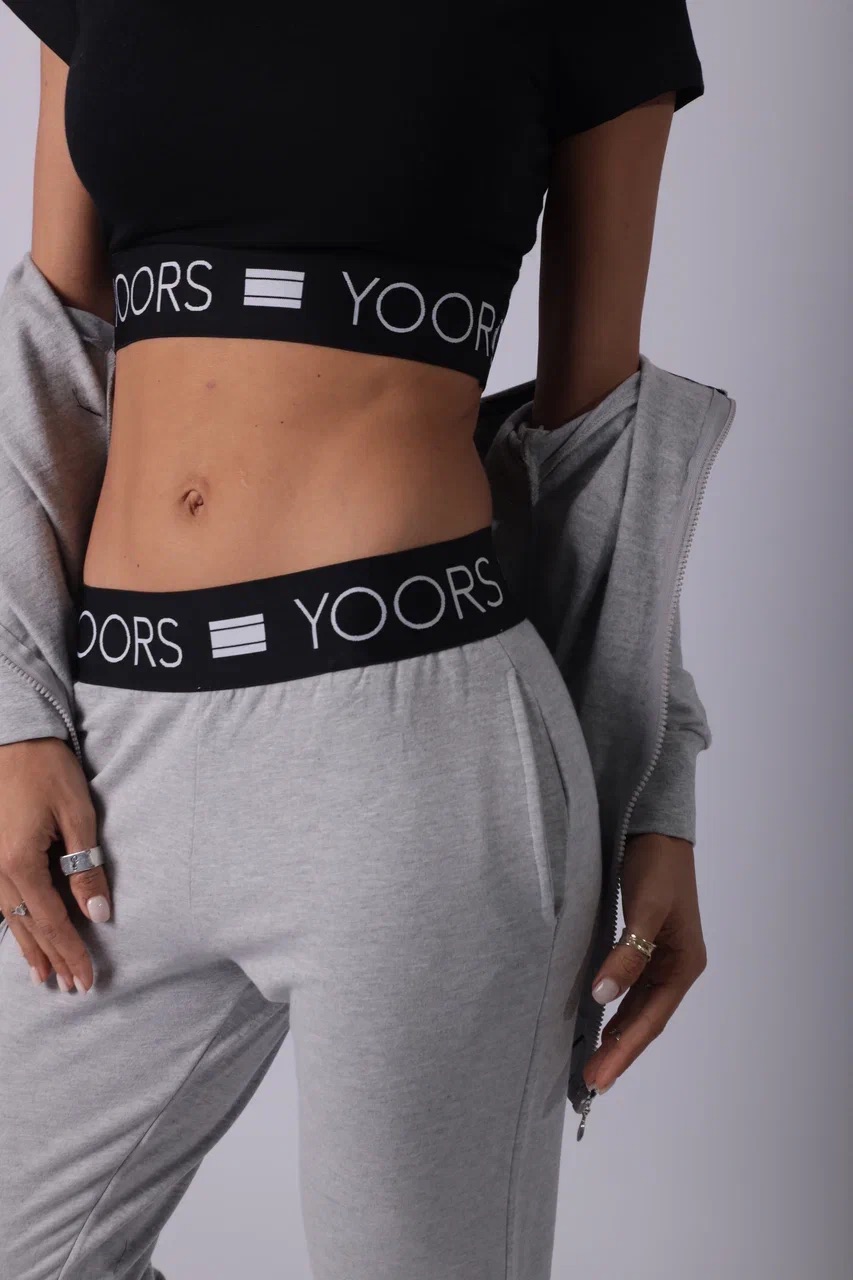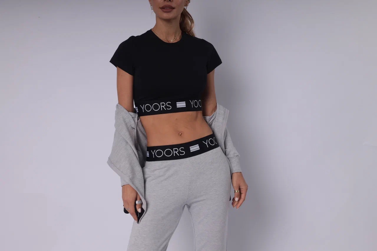 Стильный спортивный костюм из трёх предметов — это идеальное сочетание функциональности и тренда. Чёрный кроп-топ с брендированной резинкой подчёркивает фигуру и обеспечивает надёжную посадку. Серые брюки прямого кроя с высокой посадкой создают комфорт и свободу движений. Завершает образ лёгкая ветровка на молнии — практичная и стильная деталь для прохладной погоды. Комплект идеально подойдёт для прогулок, тренировок, путешествий и активных будней.